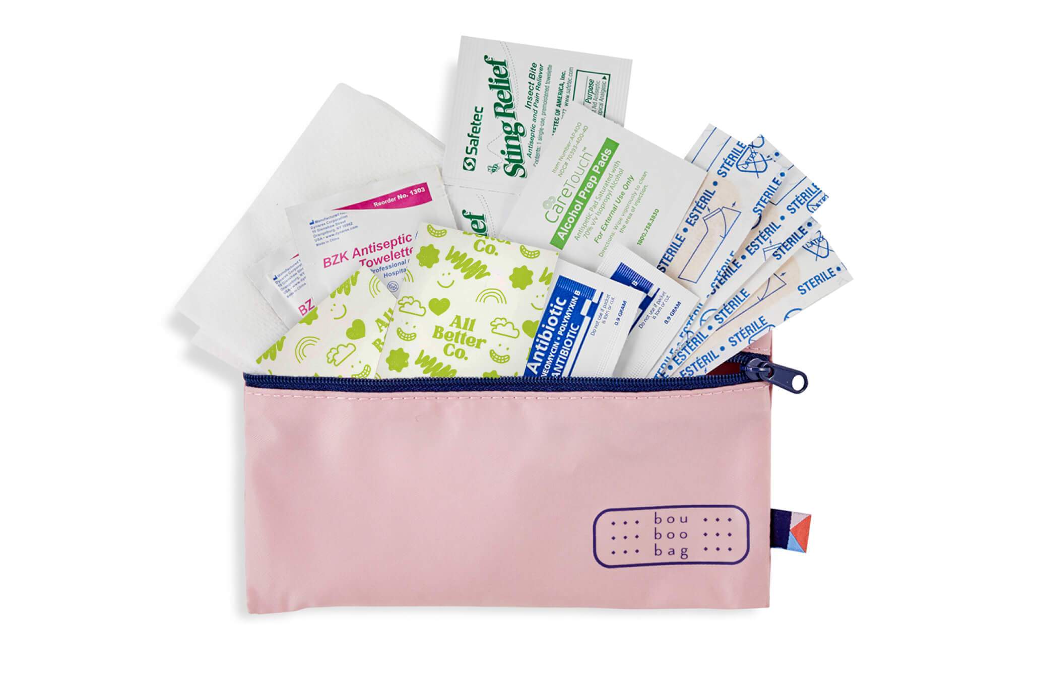 A ready-to-go first aid kit filled with supplies for life’s unexpected boo-boos. Fits perfectly in place of the changing pad in the back pocket when your Little One is out of diapers, or keep it in the main pocket.